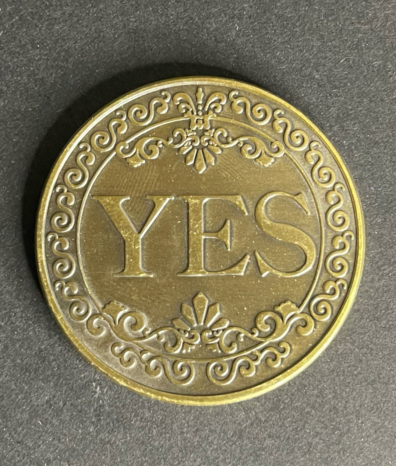 Münze mit "Yes" auf der einen, "No" auf der anderen Seite.
